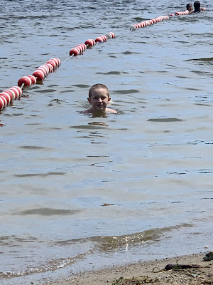 The water is warm since it's in the harbor and was perfect on the hot day. After swimming, we stopped and grabbed some snacks from Sullivans. There is literally nothing better than a lobster roll on the beach in the middle of the summer and Sullivan's rolls are extra good.